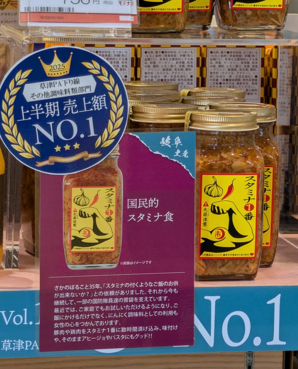『スタミナ1番』は、草津PA下り線の「その他調味料部門」でも堂々のNo.1を獲得しており、